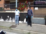 In occasione dell’inaugurazione l’artefice dell’omaggio non ha fatto mancare la sua personalissima firma all’opera d’arte di strada, con dedica alle vittime del nemico invisibile.