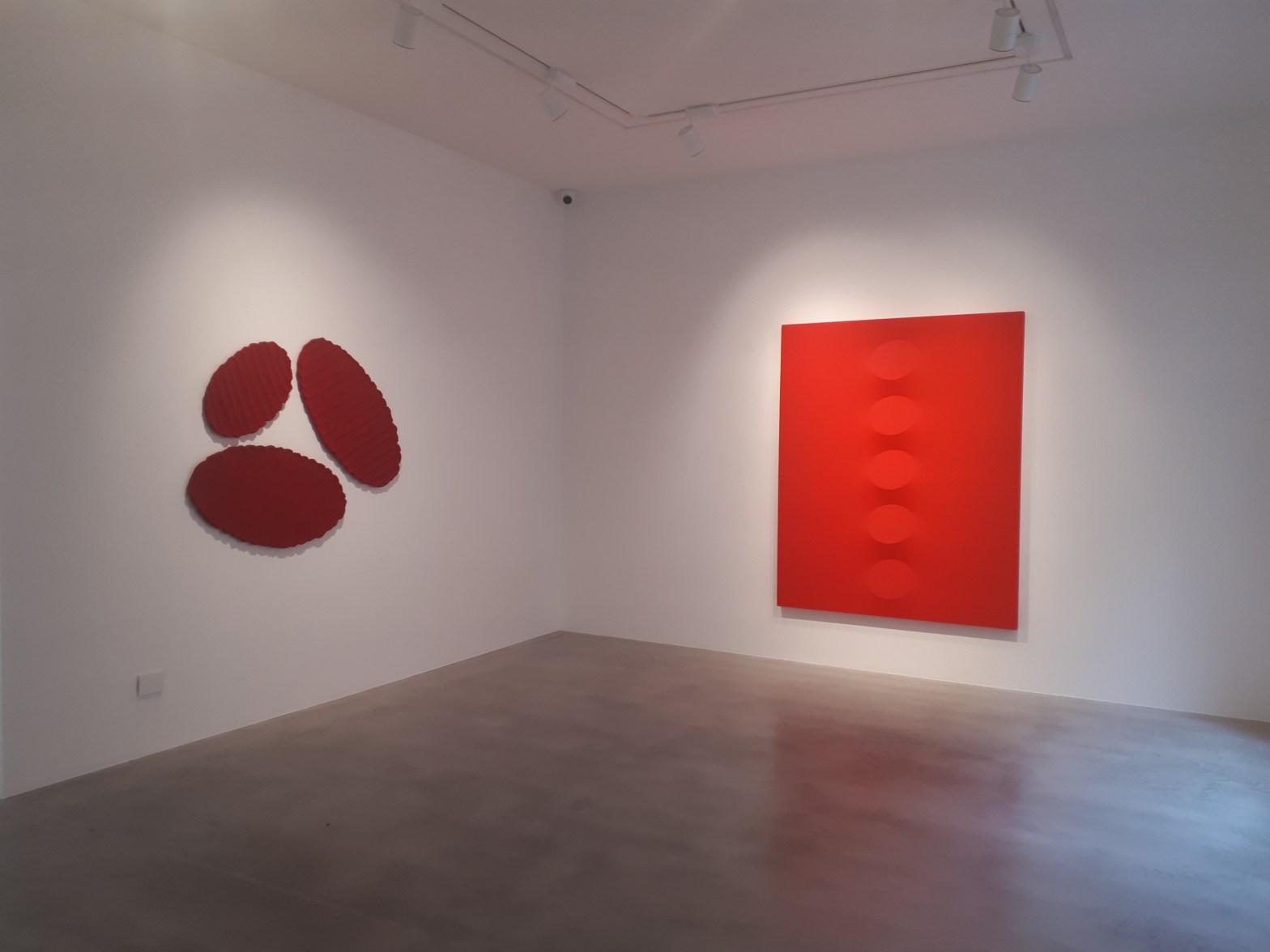 Protagoniste fino al 4 luglio di In the Matter of Color, su appuntamento, sono una ventina di opere di Natale Addamiano, Alberto Biasi, Pino Pinelli e Turi Simeti, collaboratori di lungo corso con lo spazio di via Comelico. A colpire l’occhio del visitatore è soprattutto il mix cromaticamente ben assortito ed equilibrato, di 4 intense tonalità (giallo, rosso, blu, bianco) che caratterizzano ogni opera. Dove ciascun autore ha in questa occasione reinterpretato secondo lo stile e gusto personali, la tradizione artistica del secondo Novecento, ma proiettandola sempre al futuro. Prova tangibile di questo tipo di approccio la offre Natale Addamiano, con i suoi cieli stellati, tanto tradizionali quanto evocativi.