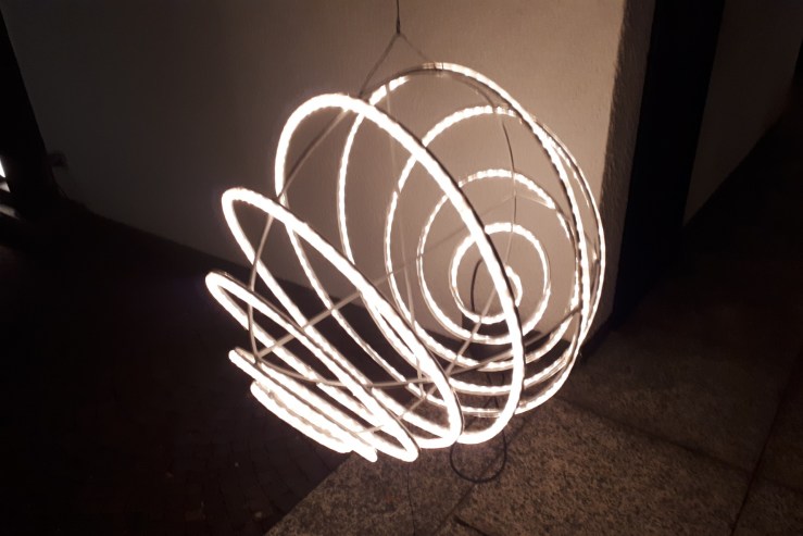 Così anche il pubblico, singoli, scolaresche e gruppi di visitatori, possono ammirare la sua iconica residenza progettata nel “69, circondata da un parco da sogno e adagiata sulle colline di Sirtori, nella Brianza casatese. Riempire questo incantevole poggio naturale facendolo dialogare con le sue “luminose”, installazioni radiose che tirano fuori il meglio della loro essenza all’imbrunire e di notte, è stata la sua sfida più avvincente nel nuovo millennio. Specialmente perchè non è cosa semplice ritrovare in altri contesti un’opera complessiva di queste proporzioni e così ben armonizzata fra tutte le sue parti. Proprio in forza di questa sua spiccata personalità, non mancano le premesse per inserire il sito nell’Olimpo dei musei atipici italiani, dopo gli ingressi nel sistema museale lecchese come Museo dei Tre Tetti (nome che riprende la forma della copertura), e nell’ICOM (International Council of Museums).