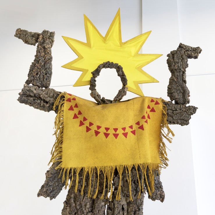 “Il governo federale aveva autorizzato certe multinazionali della chimica a collocare nel territorio della riserva le loro fabbriche più inquinanti che stavano avvelenando l’aria, le acque, gli animali e la vegetazione”. Come in altre esperienze simili condotte in altri luoghi del mondo, costumi e personaggi realizzati per questa occasione hanno dato vita ad un’installazione, allestita per la prima e unica volta allo Studio Marconi di Milano nel 1989. L’idea collettiva e pionieristica, è contrassegnata dalla spiccata componente ribelle per il trattamento subito dai nativi ad opera del governo, in cui emergeva una visione tragica e mortifera dell’ambiente naturale della riserva. Intorno all’installazione, composta da materiale molto delicato ma ancora in buono stato, e gentilmente concesso dal collezionista, saranno esposte altre opere – tra le quali una particolare serie dei Tappeti-natura – e alcune fotografie documentarie e disegni a tema politico selezionati dall’artista stesso.