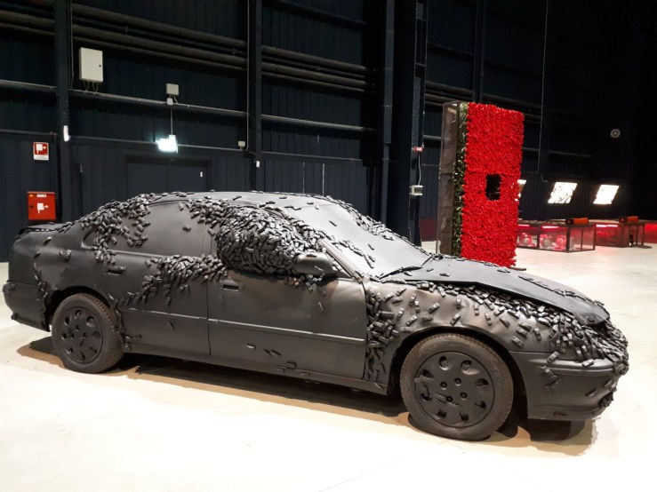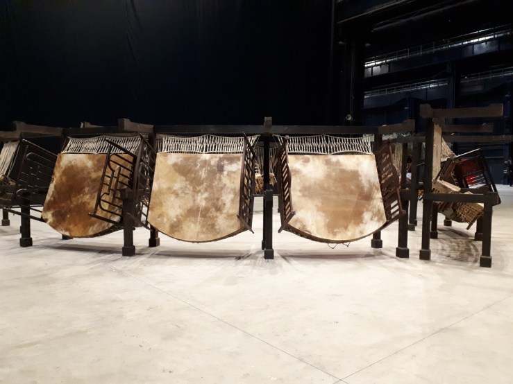 Una delle lavorazioni più impressionanti dell’intero itinerario, che non ha un ordine di visita predefinito, è Jue Chang, Dancing Body – Drumming Mind (The Last Song) che sorprende il visitatore all’ingresso nell’hangar. È un’installazione composta da letti e sedie provenienti da varie parti del mondo e ricoperta di pelli, che ha in potenza le abilità di uno strumento da percussione ma di proporzioni impensabili. Il 5 novembre 2020 e il 14 gennaio 2021 all’interno del public program della mostra, in effetti, vibrerà, in uno spettacolo che coinvolgerà danzatori e percussionisti. Ma per tracciare una sintesi, cosa sono quindi i corto circuiti? È la linfa vitale che lega tutte le installazioni in visione, in cui il silenzio della cultura buddista viene soffocato dallo scarto e dal rifiuto prodotto dalla società dei consumi.