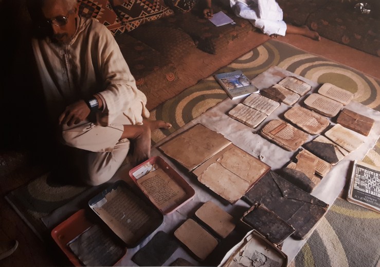 E il motivo non è unico, ma da ricondurre a più fattori ambientali con diverse sfumature. Sicuramente sulla loro condizione di graduale degrado influisce lo spopolamento sempre maggiore di queste zone del Sahara a vantaggio di aree più idonee per la creazione di insediamenti umani, percui mancano risorse umane in grado di tutelare questi beni. Così come va tenuta presente la progressiva scomparsa delle tratte carovaniere dei commercianti che un tempo mantenevano in un circuito attivo questi codici. E poi c’è il clima desertico, e la sabbia innanzitutto, che non favorisce certo una conservazione ottimale, a cui si somma l’incidenza negativa degli insetti. Appare quindi chiaro come le città carovaniere protette dall’UNESCO che dall’anno 1000 d. C. in avanti hanno iniziato a fiorire grazie alla proliferazione di numerose collezioni private di antichi manoscritti, si trovino ad affrontare la loro sfida più difficile, quella della sopravvivenza. Quotidianamente tecnici specializzati nella conservazione del patrimonio culturale sono comunque impegnati nella tutela dei tomi e delle pagine, a fronte di una missione di salvaguardia riconosciuta che ha iniziato a prendere forma negli anni “90.
