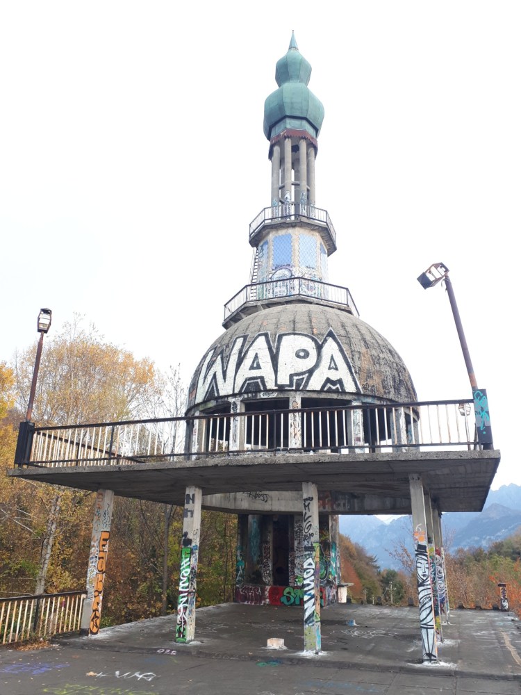 Negli anni seguenti la location ha acuito se possibile la sua nomea di “città fantasma” e spettrale, favorita da vandali che di tanto in tanto aggiungono segni di un’arte murale clandestina in punti ancora intonsi, inserendo la loro firma ad un museo improvvisato a cielo aperto e work in progress. Il risultato è un museo del graffitismo frutto di tante azioni personali libere, che a prima vista possono dare l’idea di un’unica macrooperazione decorativa comunitaria, ma che in realtà sono la somma di tanti interventi slegati ed estemporanei. Qui non ci sono grandi rappresentanti del settore, ma l’originalità delle creazioni non manca di certo, e cogliendo il pretesto di una passeggiata si può apprezzare uno spettacolo colorato gratuito, integrato con i colori del paesaggio brianzolo e della vallata che si apre sotto il minareto. Mentre l’occhio nelle giornate più limpide s’inoltra facilmente fino ai laghi briantei, e in lontananza, con un pò d’impegno, riesce a localizzare il Monte Rosa, certificando tutta l’eccezionalità di un luogo che fino a tempi non sospetti era soggetto da cartolina.