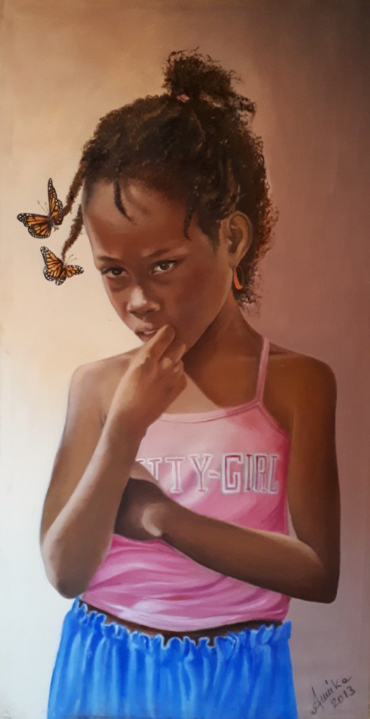 Di questi luoghi esotici Anna, che ha sempre coltivato la passione per il viaggio, non si limita solo a fotografarne i bambini per poi riprenderli nelle sue tele, ma conserva anche “tesori” locali, come le bambole che rivelano il profondo legame affettivo stretto con queste zone. Ne tira fuori insomma tutta l’essenza, dalla storia alla cultura. Riguardo alla sua sensibilità solidale, diverse sono le iniziative espositive benefiche a cui ha partecipato anche nell’ultimo periodo Covid, devolvendo, tra le altre azioni, parte del ricavato della vendita di alcune tele per l’ospedale Mandic di Merate. Quanto al curriculum che si è “costruita”, l’instancabile vena creativa di Anna ha varcato in questi anni soglie impensabili per i livelli ordinari di un autodidatta (quasi, avendo frequentato qualche anno di Liceo Artistico a Brera), se si pensa che è riuscita ad entrare in contesti come le Biennali di Venezia e Milano, e allo Spazio d’Arte di Brera. Risultati in linea con l’ambizione di un’arte libera e vivace, come Anna.