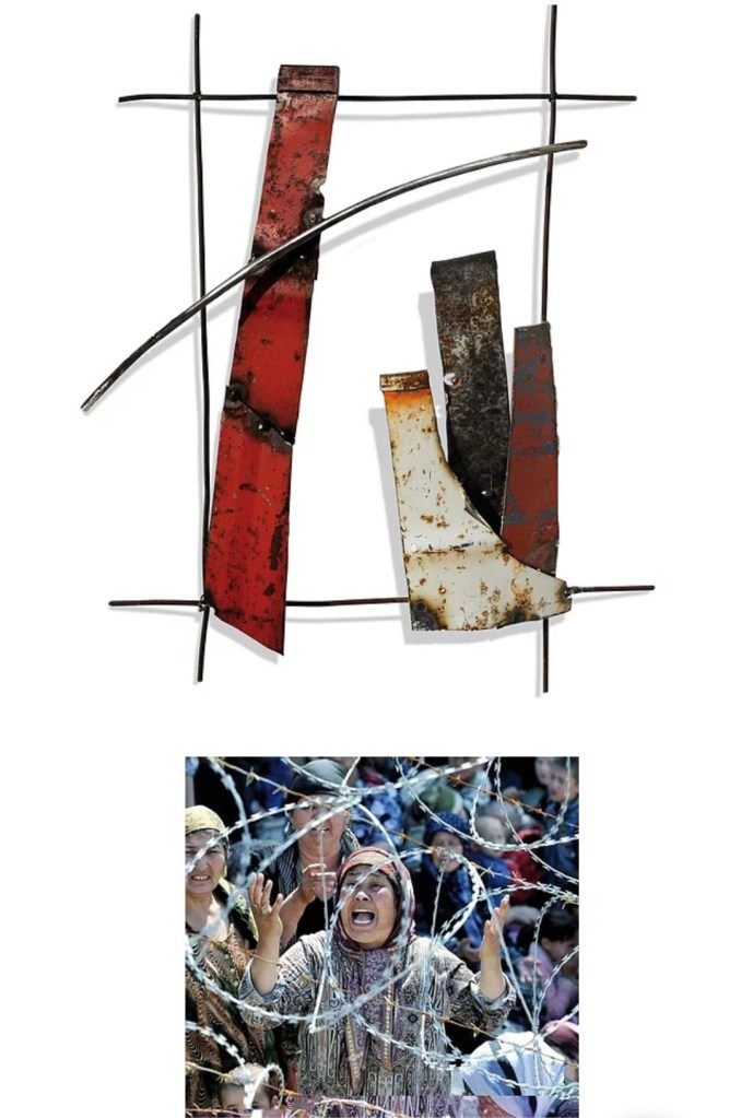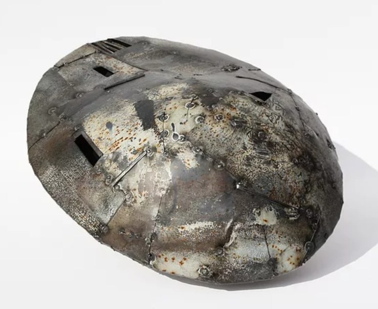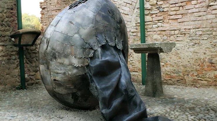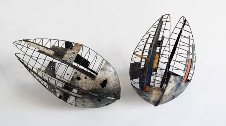 L’abilità di intravedere nei gusci di lamiera riciclati, delle spie insolite del vivere quotidiano, è un talento che coltivato nel tempo può aspirare a divenire un marchio di fabbrica artistico rivelatore di un contenuto molto raffinato. Da un’attenzione spiccata per i segni della fatica e delle esperienze di vita vissuta, nasce il modello estetico ad alto tasso di sensibilità del robbiatese Andrea Cereda (1961). Dotata di una lampante riconoscibilità, la sua impronta creatrice è evidente nell’opera Custodi realizzata con vecchie carriole arrugginite, che nelle mani di Andrea si trasformano in un sorprendente veicolo di messaggi esistenziali e riflessioni realiste, molto profondi.