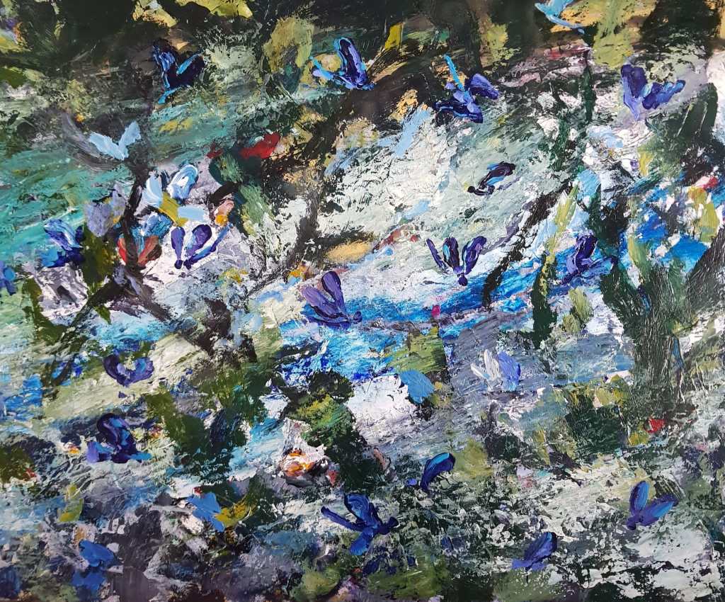 La sua ricerca poetica personale si è arricchita negli anni da serie in cui Gaetano immortala i protagonisti della natura boschiva delle alture lecchesi, per lui assurta nel frattempo a paradiso della mente e in cui riconoscere i segni della sua missione terrena. Pettirossi, libellule, farfalle, e i “trovanti”: prestito del poeta ottocentesco Antonio Stoppani che indicava così i massi erratici, l’artista riunisce in questa parola l’immagine delle castagne d’acqua che riempiono il corso del “suo” torrente, con quella proprio dei massi erratici, tipicità geologica della zona. Così Gaetano inizia a dipingere i trovanti, che a questo punto, ancora più della salamandra, comprende poter rappresentare con maggior chiarezza quella sua essenza che cercava da una vita, ma che non sa ancora dove rintracciare nella realtà. E nel 2018 anche questo passaggio si è svelato.