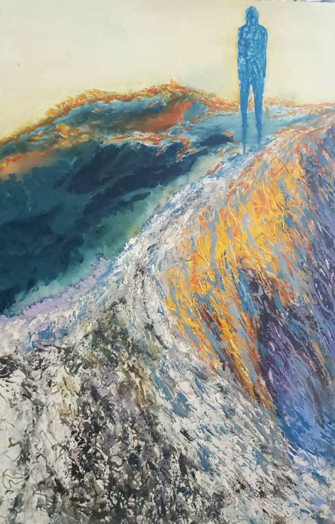 “Un giorno, in macchina sulla superstrada di Lecco mia moglie mi fa notare un’ombra su un punto della montagna perpendicolare al torrente. Per me quel momento è stato come risolvere una ricerca interiore che portavo in me da tantissimo tempo. Non ho la presunzione di aver risolto tutti i miei dubbi sulla mia natura, anche perchè finché siamo qui c’è sempre qualcosa da integrare, ma certo ne ho scoperta una grossa fetta. È come aver disvelato quel fanciullino, quel daimon spirituale che accompagna i greci fin dalla nascita. Quel qualcosa di illuminante, come le antiche raffigurazioni delle caverne che abbiamo nel nostro immaginario comune. E tra parentesi, nei miei dipinti c’è più di qualcosa che rimanda a quell’arte preistorica delle caverne”. Anche se solo in parte, Gaetano ha soddisfatto così, con un tour di mostre partito nel 2019 sul territorio lombardo per spiegare il significato del trovante, la sua costante sete di domande esistenziali. Domande che partono dalla meditazione che se ai tempi del lavoro nasceva direttamente in fabbrica – il suo spazio di riflessione personale di allora – oggi più spesso prendono forma ad esempio nei suoi dormiveglia, creando il presupposto della sua arte, lirica e riservata. In altre parole, naturale.