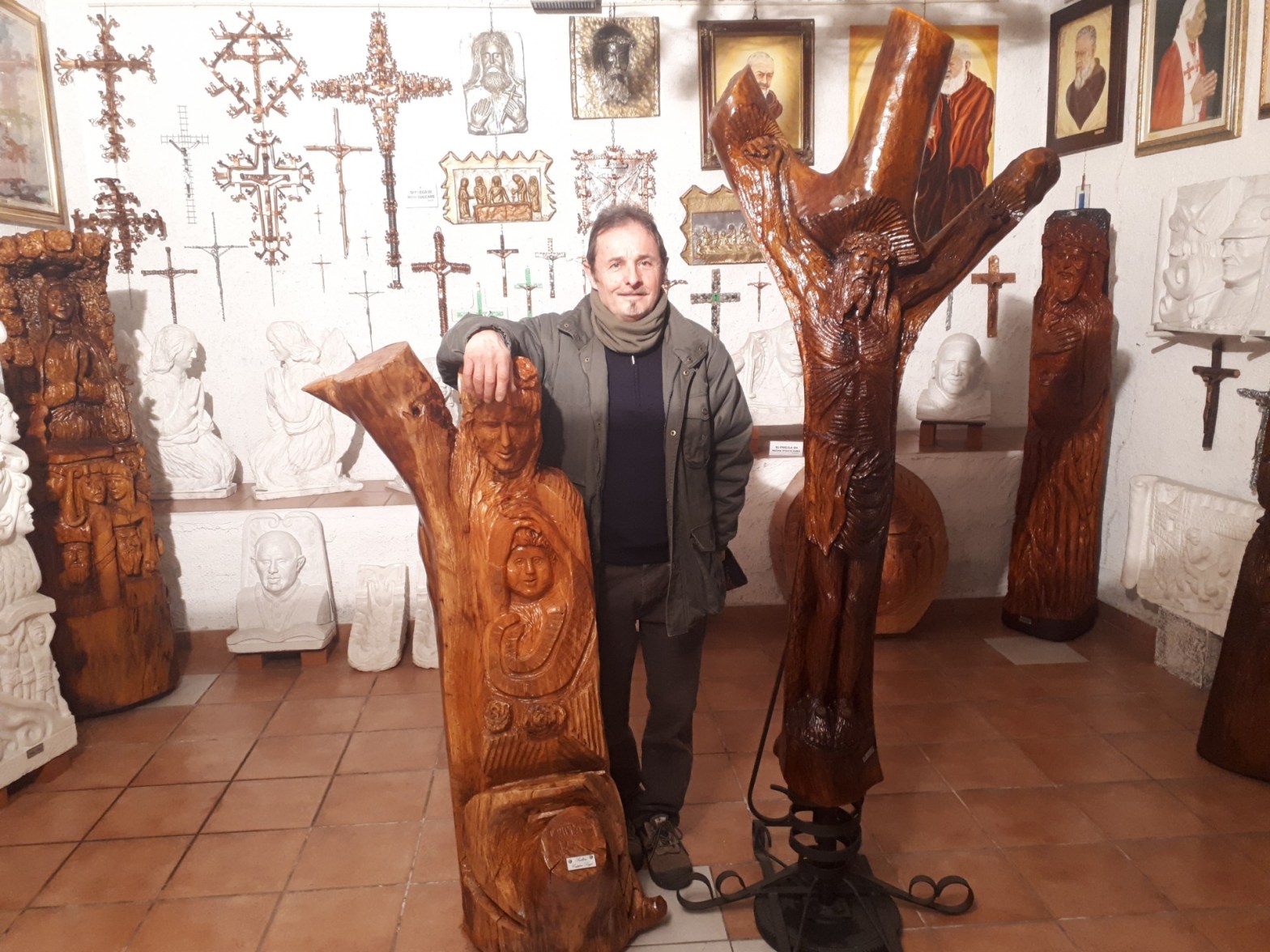 Centinaia di sculture “alloggiano” in questo rilassante angolo incontaminato adagiato sulle colline della media Brianza, luogo ideale dove immergersi in una dimensione di meditazione artistica profonda e a tutto tondo, come è l’opera di Sergio, che negli anni si è fatto apprezzare per le numerose donazioni di opere scultoree: crocifissi per sale convegni comunali del territorio, statue di figure religiose per luoghi di culto e pellegrinaggio rinomati, come il Santuario della Madonna del Bosco di Imbersago, a cui ha donato un bassorilievo di Papa Giovanni XXIII, tributato con due sculture anche al PIME (Istituto Missionario) di Sotto il Monte, paese natale del Papa Buono; opere mariane omaggio al Corpo dei Carabinieri, a cui lui stesso è molto legato per esserne parte dell’Associazione Nazionale a livello locale. Tutti lavori che testimoniano una devozione spirituale profonda che traspare chiaramente.