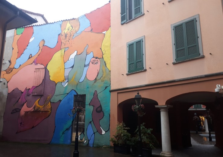 Senza snaturare la loro personale visione del genere urban, hanno cercato quindi di entrare in simbiosi con la storia e l’atmosfera dei luoghi dove hanno lasciato i segni del loro passaggio. La stessa direzione artistica del progetto è ricaduta su un volto conosciuto anche nel panorama europeo come Paolo Baraldi, meglio noto con il nick Il Baro. L’idea si è sviluppata in open projects che hanno visto all’opera in primavera Alessandra Odoni, in arte Ale Senso, su una parete della storica Cascina Pelesa nella frazione di Castel Cerreto. Sullo sfondo della campagna trevigliese si staglia una scena che riprende il soggetto de L’albero degli zoccoli di Ermanno Olmi, cresciuto in queste terre dove l’agricoltura era l’attività principe: una fotografia nostalgica dei tempi andati, a cui si aggiungono dettagli a metà fra realtà e leggenda, quelli del lago Gerundo e del drago Tarantasio, mentre lo stesso Baro ha lavorato su un muro del centro storico, dando vita ad un organismo multicolore di gusto astratto segnato da una linea nera identificativa dello stile dell’artista.