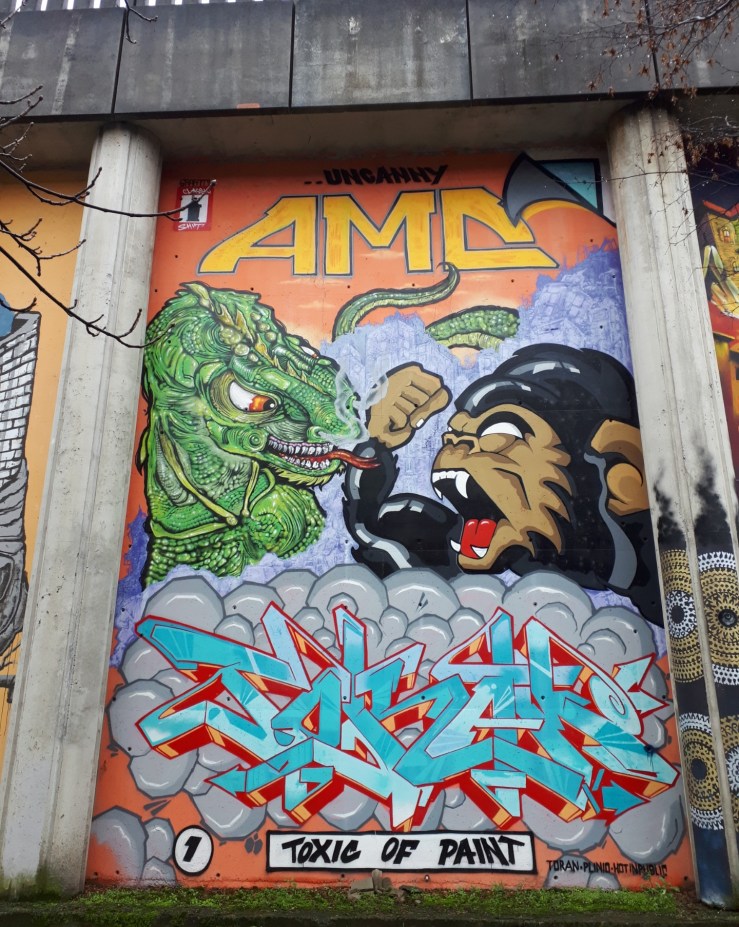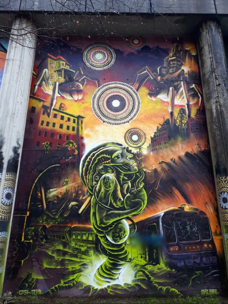 23 le tele di formato gigante apparse sul muraglione della ferrovia. Per l’occasione si sono formate delle coppie o gruppi di lavoro inediti, che si sono cimentati in lavori per lo più di fantasia, un comune denominatore sempreverde. Così Cheris e Mor, Mr Blob e Smake, Piger e Grandir, sono fra le coppie di artisti che per la prima volta individuano il contesto per unire mondi e stili diversi, trovando in alcuni casi grande sintonia e complementarietà delle linee. Spesso l’uno si è rivelato valido interprete del filone calligrafico, il partner del figurativo, per una fusione di approcci che hanno dato vita ad una sublime sintesi delle due abilità. Un altro brillante esempio di come l’arte di strada vada ormai perdendo la sua connotazione negativa e clandestina, superata ormai da modelli di iniziative assolutamente pregevoli e apprezzati dalle amministrazioni.