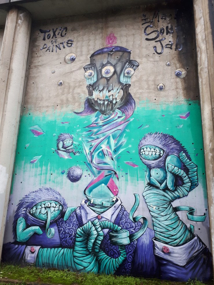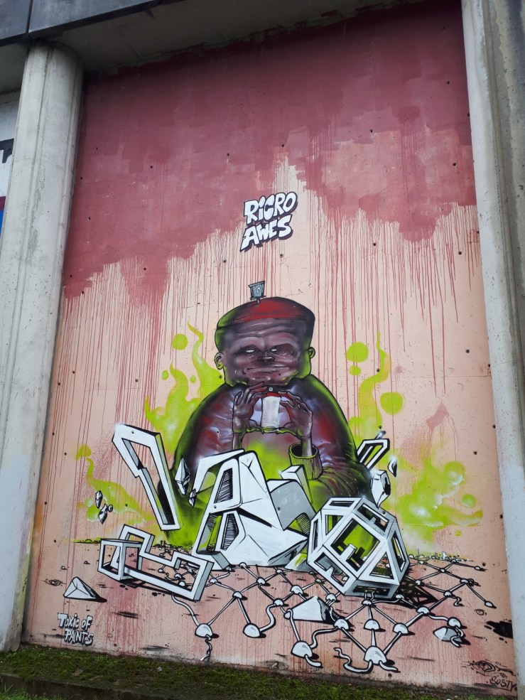 È il 2015 infatti quando Mister Caos – giovane e navigato poeta di strada che nel 2020 ha impresso nella sua realtà d’origine sandonatese il più grande disegno tipografico del mondo – insieme a Soxta, altro writer noto in città, grazie all’appoggio dell’amministrazione comunale e con il sostegno all’organizzazione della cooperativa Aurora2000 e SandoCalling, oltre alla disponibilità di 9mila euro per i materiali da lavoro, riescono a convogliare in città firme dell’arte urbana di richiamo nazionale e internazionale, nel programma Toxic of Paint di valorizzazione cittadina. Lo svizzero Plus e la svedese Okudart, a cui si aggiungono esponenti italiani come Mr Wany, Orgh o Gio Evan, sono alcuni dei validi rappresentanti della scena di strada che in tre giorni stravolgono l’atmosfera di via Greppi, all’interno di un programma che vede andare in scena anche spettacoli, concerti, dj set e ad altre tipologie di eventi con il fine unico ed ultimo di unire una comunità.
