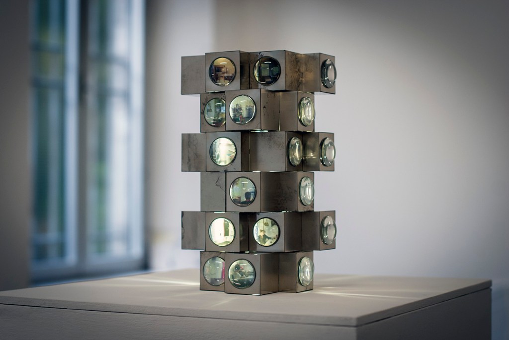 Una piccola missione culturale che Matteo ha avviato dagli anni Dieci attraverso la creazione di minicicli di opere in cui il contenitore, che si tratti di soprammobili piuttosto che di soluzioni da parete, spesso si configura come valore aggiunto esteticamente rilevante, che attira inevitabilmente l’occhio su di sè. “Ho iniziato nel 2015 a realizzare questi box di dimensioni contenute che ospitano stampe a colori, e che propongo in varie forme e materiali, più spesso in metallo, con l’idea di immortalare frammenti di fugace e monotona quotidianità, elevandone così l’importanza nelle nostre vite. Inizialmente ero solito utilizzare parenti come soggetti. Il processo fotografico in questa modalità non viene sminuito, ma l’interesse è sicuramente catturato da tutto quello che gli ruota intorno. Le serie che continuo a portare avanti sotto questa forma sono le Circostanze e le Capsule Tower, che avevo sperimentato in occasione di una delle tre edizioni dell’Arteam Cup a cui ho partecipato. Mi piacerebbe tenerle attive sviluppandole attorno ad un soggetto che trovo personalmente interessante e adatto come può essere lo scenario di una persona immortalata nella sua stanza. Mentre spostandoci sul pianeta della fotoincisione, processo che mi serve per ottenere l’incisione di lastre di metallo attraverso bagno chimico, desidero tenere in vita anche le Comunità ospitanti, che considero mondi a se stanti ruotando attorno al tema dell’accoglienza e dell’immigrazione”.
