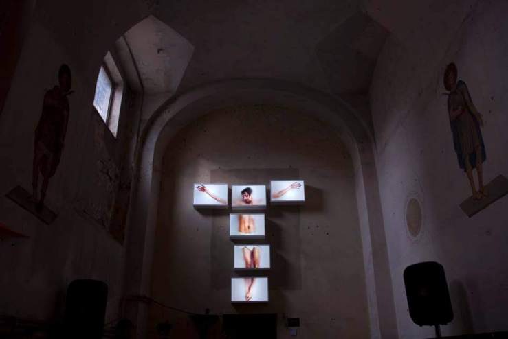 Uno scoglio superato evidentemente in maniera brillante e monumentale in Eloì, Eloì, lemà sabactàni? Installazione dal significato profondo, “accesa” nella chiesa di fondazione medievale dell’ex carcere di Sant’Agata di Bergamo nel 2016, sfrutta un’immagine atavica come la Crocifissione per fare luce, tramite neon inseriti nei cubi di legno in cui si scompone, su un altro tipo di dolore. Un disagio, comune nell’uomo contemporaneo, alla perenne ricerca di risposte mai arrivate. Un lavoro coerente “a suo modo”, con la vetrina spirituale di esposizione.