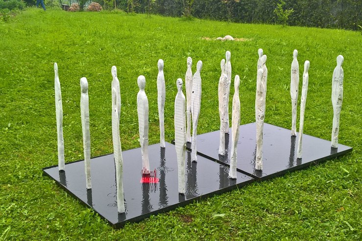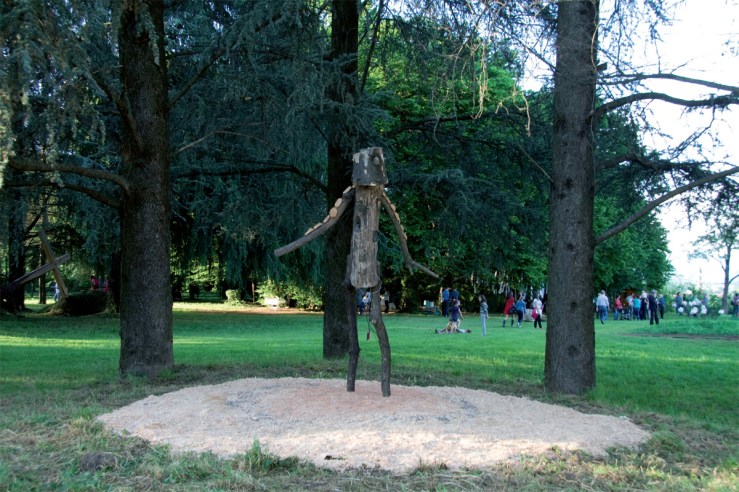 Parliamo di un paradigma ideale di quel filone espositivo che va sotto il nome di Art in Nature, che a fine primavera “fiorisce” per alcune settimane in un lembo di terra appartato del paese. Ideato e curato da Elena Isella, l’impianto del concorso consolidatosi nelle prime edizioni della Biennale chiama gli autori selezionati tramite bando a interagire con un’area espositiva di pregio paesaggistico, tra via del Ciocchino e via Segantini, che dispone di un grande prato e un caratteristico roccolo, spunto interessante tra l’altro per legare le opere anche al tema animale. Una sfida che, quasi naturalmente, è stata presa al balzo da diversi artisti. Un’installazione solitamente di dimensioni maggiori fa quindi da traino alla kermesse, e se si vuole, da immagine simbolo dell’edizione in corso. Nel 2019 la tedesca Antje Stehn ha racchiuso in modo monumentale nella Capanna dell’artista realista terminale, in legno di nocciolo, bambù, fibre di cocco, fibre di palme cinesi, crine di cavallo, juta e rete di ferro, il simbolo della natura che l’artista realista in effetti dovrebbe amare per definizione. Passandoli in rassegna, si scorgono innumerevoli argomenti toccati nelle varie Biennali dai partecipanti, anche di rilievo internazionale, utilizzando i materiali più disparati, dal cemento al legno fino agli elementi naturali. Scelte valorizzate da una collocazione site specific studiata con cura durante la fase di selezione insieme agli artisti, nel passaggio dallo step progettuale a quello realizzativo.