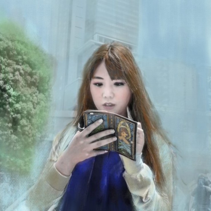 Linda ha già un portfolio ricco di immagini da cui idealmente poter ricavare modelli per la “terza via” rivelatrice, tra food appunto, paesaggi e molto altro. E le Gerlini si sono già “allenate” per offrire un qualcosa che possa essere apprezzato per la professionalità: in occasione di un viaggio di Linda a Tokyo, per esempio, istantanee scattate a persone con i tratti del luogo, sono diventate la base per sviluppare immagini con uno stile completamente rivisitato e quasi da illustrazione, sempre con tutti i passaggi digitali del caso e il coordinamento tra le due sorelle. Laura dal canto suo ha già uno stile di pittura ben formato e instradato su una formula figurativa evocativa e poetica, che si sposa molto bene con la terza via, e che contempla spesso l’uso di olio, acrilico o acquarello, ma anche una tecnica mista. Paesaggi di mare, vedute sconfinate, ma chiaramente anche il ritratto, come le muse della mitologia greca a cui ha dedicato una serie classica, spesso dalle linee sfumate e poco nitide, risultano temi calzanti per sviluppare bene questo nuovo modello di valorizzazione dell’immagine con la tecnologia. Dal punto di vista del mercato come è stata accolta la terza via? “La nostra galleria di riferimento, PasspARTout Unconventional Gallery, all’interno dell’Unahotels Expo Fiera di Pero ha già mostrato di gradire l’idea, percui da circa un anno nel ventaglio delle soluzioni c’è la possibilità di trovare oltre alle foto di Linda e alle mie tele, anche articoli che seguono questa “terza linea”. E grazie alla nostra presenza su due piattaforme internazionali, una francese e l’altra statunitense, praticamente non ci poniamo più limiti geografici”. Una via digitale che collega idealmente tutto il mondo.