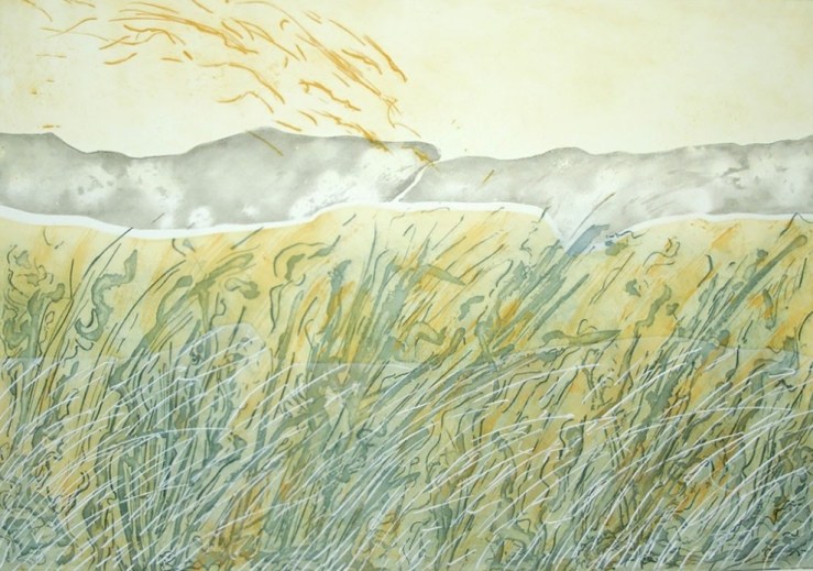 Da allora Raffaella non si scrolla più di dosso una tecnica che nel panorama odierno non è certo di tendenza, ma che lei riesce a maneggiare con sorprendente padronanza, adattandola alla sua esigenza rappresentativa nelle diverse declinazioni, dall’acquaforte e l’acquatinta, fino alla più delicata maniera a zucchero, o cera molle, dal tratto più sgranato come di pastello. Subito dopo l’Accademia predilige un linguaggio astratto, forse rimasto ancorato ai linguaggi dei suoi maestri (Veronesi, Isgrò, Colombo), ma già allora le sue lastre vengono trattate con originalità: le matrici molto acidate rendendole materiche, usando carte spesse e rugose per imprimerle, con il torchio calcografico, con molta pressione. Grandi fogli dai titoli: Orizzonte Nord, Stretto di Bering, Cielo di Grindenwald, sono alcune fra le incisioni esposte in una mostra a Monza a cura di Paolo Biscottini – allora direttore dei Musei Civici.