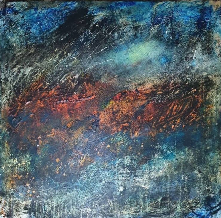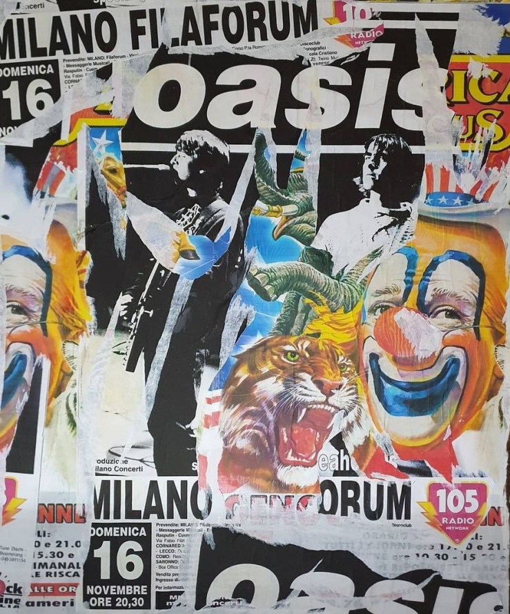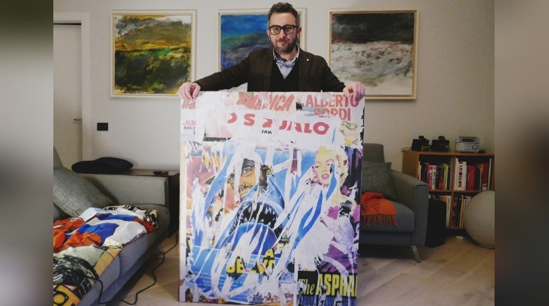 “Circa tre anni fa, dopo essermi assestato con la gestione delle varie attività e degli impegni, ho rimesso in circolo la mia linfa artistica riprendendo a produrre con intensità, portando anche una novità nel genere di opere che devo dire mi entusiasma parecchio. Sono paesaggi naturali astratti realizzati in acrilico, dove viene difficile individuare un disegno ed elementi condivisi: ognuno può trovarci qualcosa di diverso che ad altri magari sfugge, sono scorci che lasciano ampio spazio all’interpretazione personale. Fedele però ai miei cari vecchi decollage, non ho messo in archivio quel canale, ma ho continuato a portare avanti anche quel gusto. E nel 2019 in particolare ho iniziato ad inserirmi con più decisione nel circuito degli eventi d’arte nazionali e internazionali, partecipando fra gli altri alle fiere Vernice Art Fair di Forlì, Arte Genova, oltre a trovare posto in collettive di artisti emergenti, come in Amars allo Spazio Arte Tolomeo di Milano. Mentre all’inizio del 2020 ho preso parte alla quarta edizione di NowArt (tappa bergamasca ad InArte Gallery, della manifestazione di rilevanza internazionale dedicata alla valorizzazione degli artisti emergenti ndr). Fino a quando il Covid non ha interrotto la possibilità di vederci, programmare e organizzare eventi, che sono dal mio punto di vista fondamentali per conoscere nuove referenze da spendere per provare ad affermarsi in questo mondo. Dal canto mio ho ben chiaro il percorso che ho intenzione di fare in questo settore: piccoli passi, per cercare di trovare la mia giusta dimensione. Posso dire di non avere fretta in questo senso”.