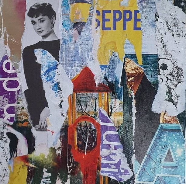 “Le due sfere in cui attualmente mi cimento non nascono assieme – ci racconta Simone – ho iniziato nel 1999 dedicandomi ad un genere informale astratto da autodidatta, e proseguendo con un’arte che si rifà chiaramente a Rotella, recuperandone la storica lettura espressiva dei decollage. A questo proposito, sottolineo con piacere di sentire erroneamente attribuire a volte le mie stesse opere a Rotella, che per me non può che essere motivo di vero orgoglio. Nella proposta di questo filone cerco di svariare fra l’impiego di grandi formati come pure di supporti più dimensionati e inseriti in teche in plexiglass, per dare quel gradevole effetto lucido ideale per l’arredo”. Dopo meno di una decina d’anni di pratica per hobby Simone ha deciso di accantonare momentaneamente il capitolo arte per dedicarsi all’attività principale di rappresentanza farmaceutica e alla gestione della nuova vita familiare. La fiamma però non è mai svanita, ma è sempre rimasta in un angolo, pronta a risvegliarsi da un momento all’altro. E infatti quel momento è arrivato, come in fondo Simone ha sempre sperato in cuor suo.