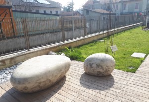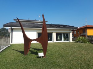 Inaugurata nel 2017, la struttura vedanese dedicata ai servizi sociali è frutto del progetto dall’architetto vedanese Oliviero Zappa, e si sviluppa su tre livelli (più uno interrato), che un sottile artificio prospettico dal piazzale del parcheggio antistante fa apparire meno elevata e più orientata in senso orizzontale. L’intitolazione dello stabile dalla linea futuristica è un tributo alla storica visita di Papa Francesco in Brianza, coronata dalla celebrazione eucaristica nel Parco di Monza a marzo di quell’anno. La sensazione che si respira solamente osservando il giardino che ci introduce alla Casa è paragonabile a quella che si potrebbe tranquillamente percepire in un tradizionale parco sculture. E non a caso alcuni dei nomi ospitati, guardando alle figure di Pieralberto Filippi e Sonia Scaccabarozzi, si ritrovano in questo tipo di ambienti strettamente dedicati all’arte sulla falsa linea di Villa Mariani di Casatenovo.