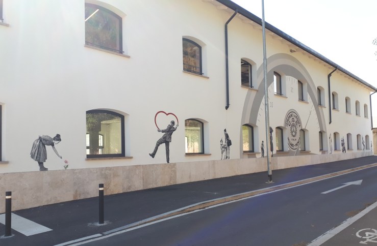 La ciliegina al progetto che ha rinnovato l’ex polo produttivo – trasformatosi dopo la dismissione delle attività dello stabilimento in un’oasi abbandonata –l’hanno messa i decoratori della società StART decoration, Lorenza Lacelli, Dario Cresseri, Dario Limonta e Daniela Benedini, tributando un maxi murales sviluppato lungo il fronte-strada e una parete laterale del nuovo edificio che guarda su via Solferino.
