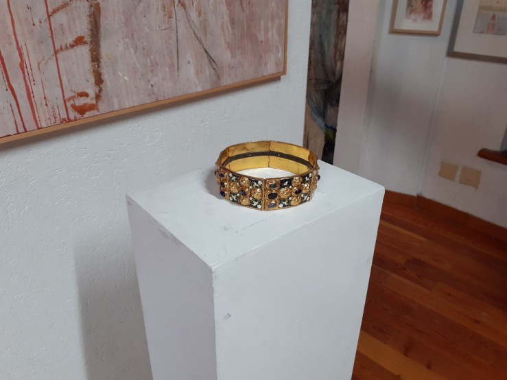 Oggi sfoggia questi due gioielli testimoni di tutta la sua straordinaria perizia nel reperire le pietre preziose che adornano il pregiato diadema, la stessa impiegata per riprendere le misure autentiche all’Istituto Gemmologico Italiano. Si pensi solo alla provenienza degli zaffiri, recuperati niente meno che dallo Sri Lanka, i granati d’oriente, le ametiste e i corindoni. Ma lo stesso zelo sembra essere stato indispensabile per riprodurre anche le aree floreali smaltate e le 26 rosette sbalzate. Un lavoro paziente e meticoloso, dove niente è lasciato al caso. Neanche la cintura in metallo che corre lungo il diametro interno del diadema (dove, nell’originale, sarebbe contenuto il famoso chiodo estratto dalla Croce di Gesù, che Papa Gregorio I donò alla regina Teodolinda come segno di riconoscenza per aver convertito il suo popolo al Cristianesimo). Un’ulteriore riprova di un’artista che sa accettare le sfide importanti, quelle indispensabili per passare alla storia.
