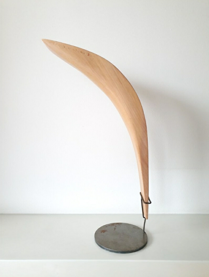 Dalla pesantezza si torna quindi al carattere leggero delle sue raffinate sculture che nascono dalla terra e puntano al cielo, elemento che ritroviamo sotto mutate sembianze sul versante della pittura, specie nei solchi e nelle tracce dell’anima. Riprendendo la semplicità geometrica che emana il simbolo di generosità e amicizia con cui è riconosciuto universalmente Le Corbusier, la celeberrima La Main Ouverte (La mano aperta) di Chandigarh in India, l’opera di Giovanni si presenta essenziale ma non sommaria, proprio come la mano aperta dell’architetto svizzero. E nella pittura la sperimentazione trova la sua massima espressione nelle proposte in legno in tre dimensioni affiorante dal supporto, come quelle dune del deserto che l’artista, da endurista consumato ha imparato sulla sua pelle a conoscere molto bene. Per apprezzare a fondo il valore di queste opere ultraterrene, Giovanni ne ha coniato un suo personale codice di comportamento per i visitatori, per cui è “Vietato non toccare”, a testimonianza di quanto l’elemento tattile giochi un ruolo determinante nella comprensione della sua opera multisensoriale.