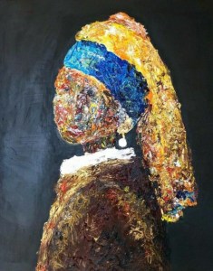 Si può solo immaginare l’atmosfera raffinata, ma non seriosa, suscitata nell’osteria agli ospiti dalla vista di una versione della Ragazza con l’orecchino di perla solo evocata con il sapiente ricorso alle macchie, mentre in sala si degustano le prelibatezze della casa. Dipingere per Michele è quindi l’effetto naturale di una folgorazione che ne ha liberato le qualità potenziali, e che lui ha saputo valorizzare giocando (all’occorrenza anche scherzando) con l’emotività di forme e colori che l’astratto concede sempre alla mente nel suo essere indefinito, e non ultimo, stupendo con la poesia dell’incertezza visuale.