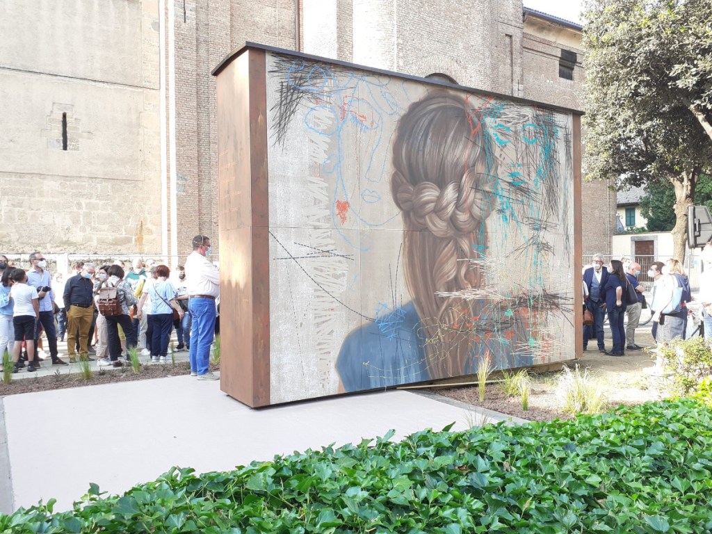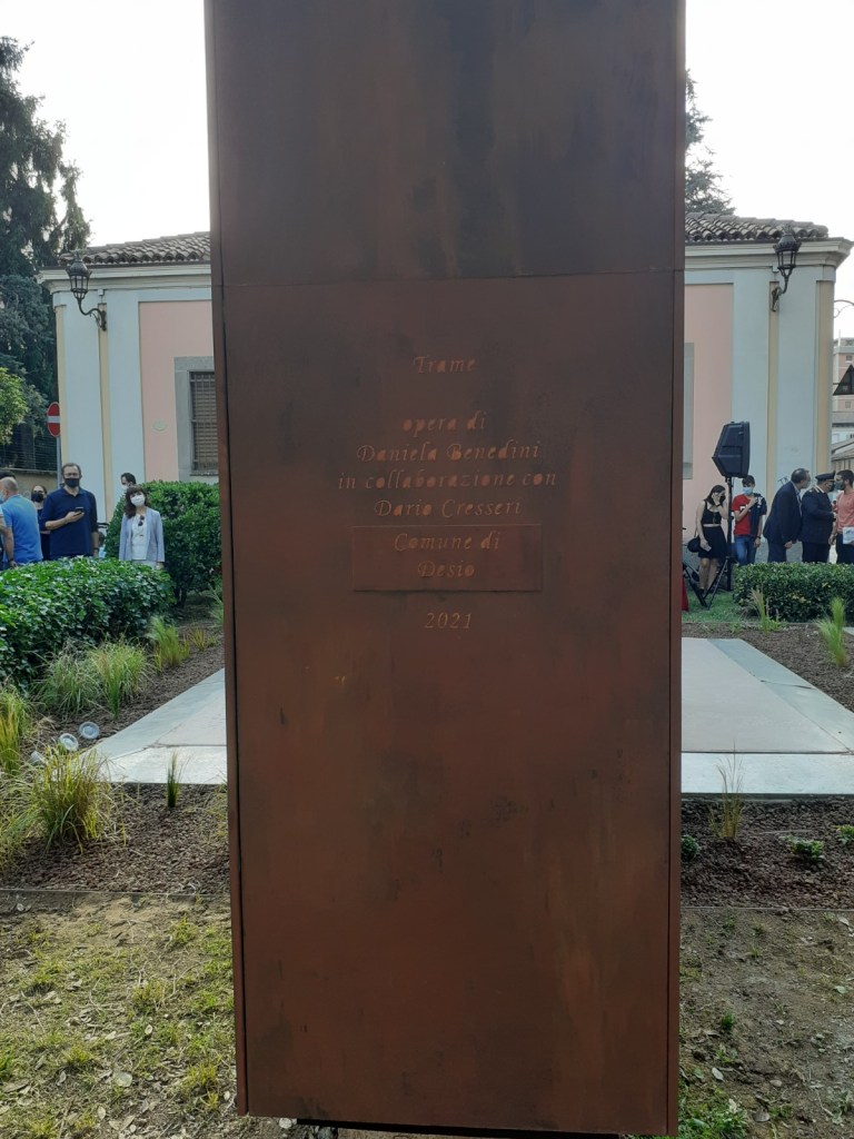 E sulla spalla della possente struttura che riempie di senso quest’area laterale della basilica, è impressa una sequenza poetica di Fabiana Scaramella che completa armoniosamente il monumento: “Guardami punto dopo punto. Ecco il mio volto da tessitrice, di donna che lavora e sogna. Ascoltami: ho tante cose da raccontare che nessuno sa”. Con l’operazione completata, Desio si riappropria così di un pezzo importante del suo passato e di un punto di riflessione fondamentale per non scordarsi mai da dove proviene.