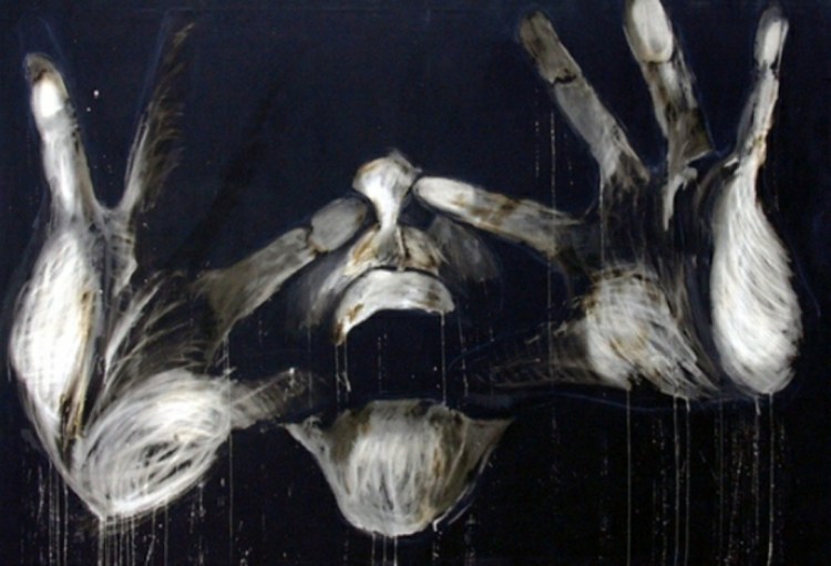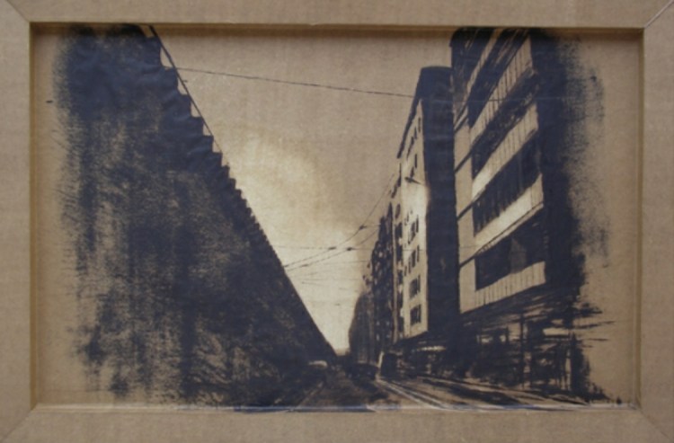 Malgrado la nomea di potenziale reagente pericoloso, la candeggina sembra avere insita una prerogativa magica, di segno inconfondibilmente positivo, ossia quella di tradursi in luce al contatto con una superficie. “Di fronte alle sfide sottoposte dall’ambiente metaforicamente imprevedibile della strada, credo di non essermi mai sottratto alla sperimentazione in questo campo, declinandolo di volta in volta in soluzioni spiazzanti e contraddittorie. Come l’idea di trasferire il piano tradizionale dell’asfalto, da orizzontale a verticale, utilizzando basi di asfalto a mo’ di tele, o cospargendo di bitume e inerte il fuoristrada con cui ho percorso decine di migliaia di chilometri. Ribaltando quindi la consueta relazione fra i due elementi, per un’installazione atipica che dal 2009 ha girato svariate location della Brianza e non solo, “esibendosi” anche al Padiglione Italia di Torino nel 2011. L’ultimo “posteggio” in ordine di tempo, è la virtuosa ecofrazione di Baggero a Merone. Il motore di ogni mio intervento artistico deriva da un atteggiamento per natura mai inerte di fronte a fatti e situazioni che vivo. Come la visione nel 2004, del fresco teatro di guerra serbo reduce dai bombardamenti della NATO, che mi indusse, una volta tornato dal soggiorno, ad ampliare il raggio di ricerca per fare uno studio più approfondito sui contesti abbandonati”.