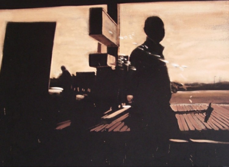 La strada come perenne spunto di partenza con cui esaminare, armato di un linguaggio chiaro e accessibile, progetti di carattere solidale ed ecologico, con una funzione espressamente riflessiva, quando non direttamente educativa. Da fine anni “90 il codice compositivo di Enrico Cazzaniga non può fare a meno di avvalersi di operazioni a forte trazione sociale che tradiscono una spiccata sensibilità di fondo, con l’obiettivo di smuovere le coscienze più dure, obbligandole a rivolgersi al mondo con occhi diversi, nuovi. Con questo fine l’artista cabiatese riscrive a modo suo la gerarchia dei colori, ridotti ad una gamma essenziale ma esaustiva, basata su una sostanziale bicromia, e una filosofia fine e concettualmente calibrata della sottrazione, che va coraggiosamente controcorrente alla ridondanza mediatica assillante. Il tutto passando da un filtro caustico che disconosce paradigmi quotati di riferimento nella storia dell’arte: quello corrosivo della candeggina, in possesso del potere magico di cancellare chimicamente l’anima più gentile della carta bituminosa – in concerto con l’azione scurente invece del pirografo, leggera o invadente – quanto quella più resistente di un tessuto coriaceo come il fustagno.