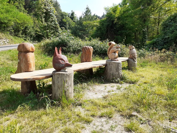 Nel 2018 ha preso così vita un nuovo gruppo di proverbi che animano un’altra appendice del sentiero principale, e grazie ad una segheria di Carate Brianza ben disposta a sostenerne il progetto, sono spuntati anche animali e panchine per la sosta, e più recentemente un’opera d’arte di gusto estetico e simpatia che certifica l’estro manuale di Palamini. L’opera d’arte in legno di cedro sarebbe una panchina rivisitata, in località L’ustana, che suona un po’ come un modo di far uscire in tutto il suo splendore l’anima silvestre e naturale che abita questo luogo fatato. Infatti su un lato spiccano tre animali abitanti di questi scenari, dal gufo alla volpe allo scoiattolo. Sull’altro lato fanno da contraltare tre personaggi buffi: Naslù, protagonista di un fumetto ambientato in questi versanti collinari, è un ragazzo che vuole vivere una vita semplice nella natura; Gundu è un irriducibile ed astuto; Babu è invece un personaggio della mitologia popolare. La spinta entusiastica verso le continue novità di questo progetto costruito attorno al percorso ad anello, di recente ha portato sul Pian dei Pini, il ritrovo degli eventi dell’associazione Sentiero dei Proverbi di Lissolo, a realizzare sempre con il conforto del maestro del legno Palamini, una costruzione mastodontica a dir poco impegnativa: un osservatorio astronomico per guardare le stelle… da un luogo stellare.