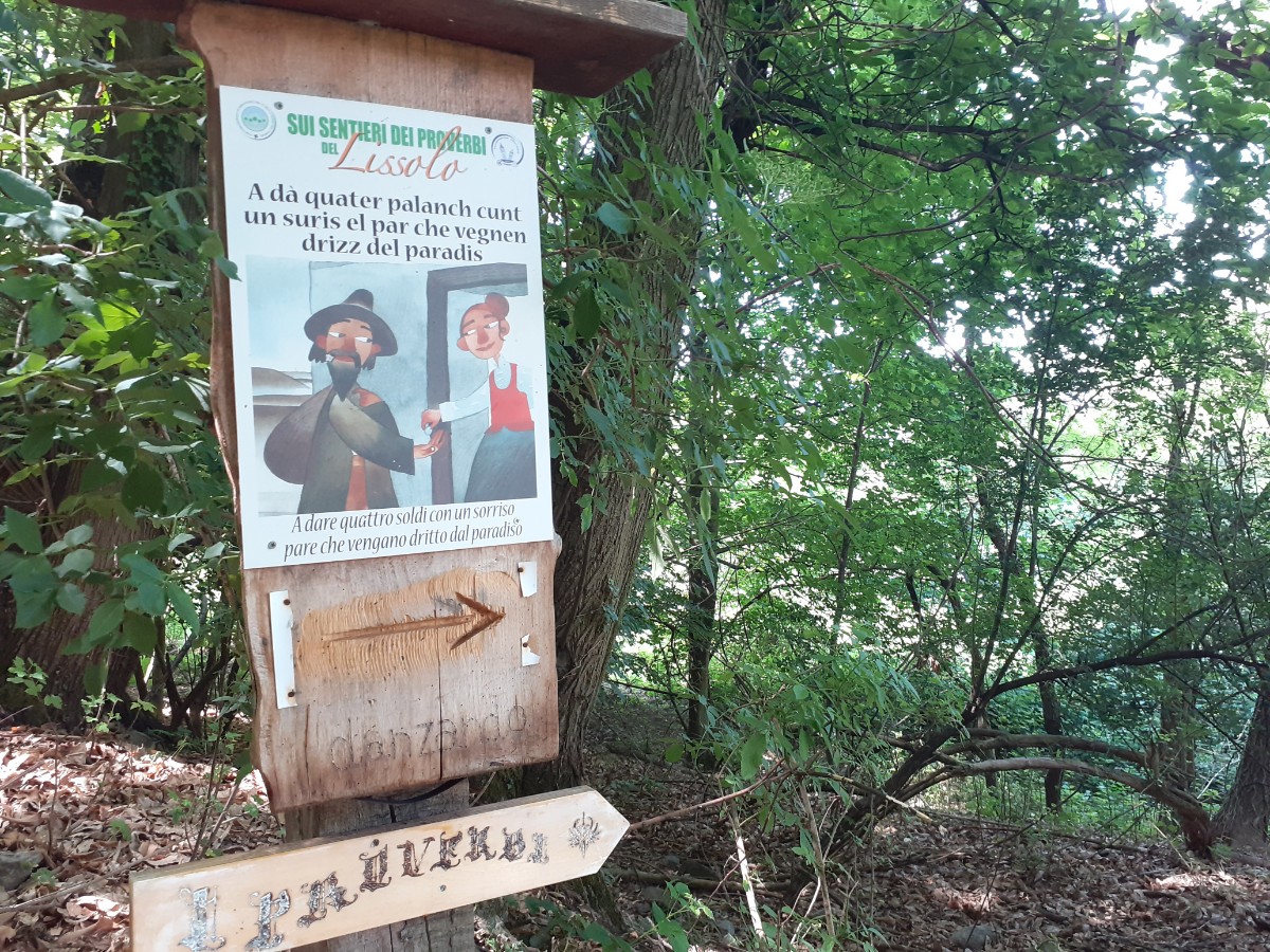 Immaginate di poter godere del benessere psicofisico di un ambiente collinare che sembra uscito da un libro delle fiabe e dalle proprietà rigeneranti, arricchito da sentieri boschivi curati per il trekking, che durante la stagione autunnale si offre come scenario ottimale per la raccolta delle castagne. Sono solo due delle opzioni per il tempo libero che si possono sfruttare in questa indescrivibile realtà dalla fortissima identità a Lissolo, frazione de La Valletta Brianza. In questo contesto naturalistico che già di per sé ispira sensazioni di pura evasione e libertà, specie nella stagione delle escursioni per tutta la famiglia, dal 2015 un falegname particolarmente attento al destino delle piante di quest’area dal valore paesaggistico inequivocabile, Giuseppe Palamini, ha deciso, in comune accordo con l’associazione culturale locale Pelagus, di valorizzare con ancora maggior impegno questo limpido polmone verde di vita nel Parco di Montevecchia e della Valle del Curone, imprimendogli una connotazione ancora più riconoscibile, affinché potesse essere ricordato nell’immaginario comune come un piacevole riferimento per lo svago della mente: un Sentiero dei Proverbi, dove imprimere nel legno recuperato da castagni deceduti, tradizioni locali ancorate a vecchi modi di dire briantei che, vi accorgerete praticandolo, fanno anche un po’ sorridere.
