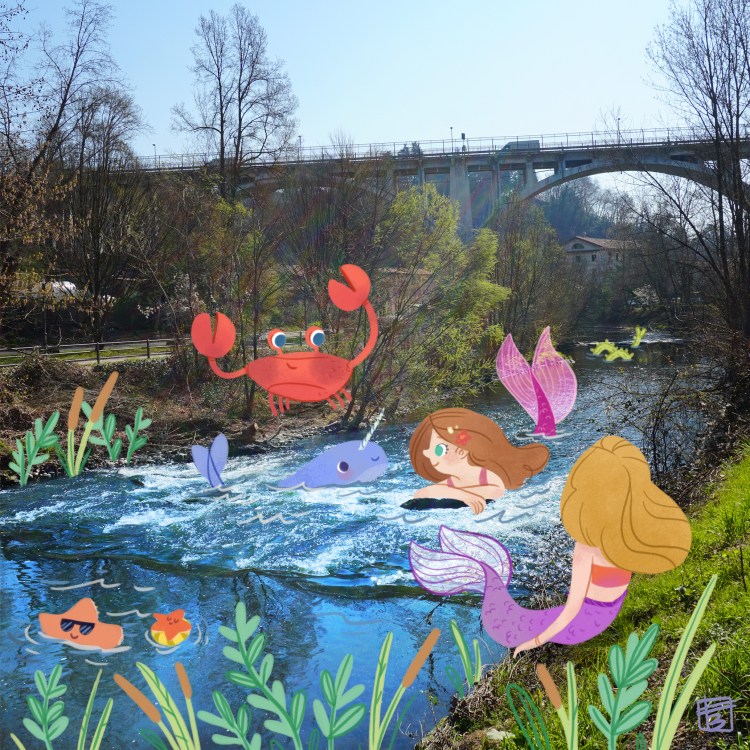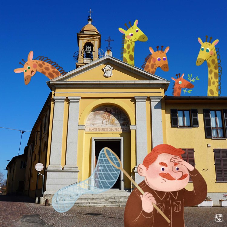 “L’idea è nata guardando un modello simile che è stato realizzato sulla città di Ravenna e approfittando della restrizione di stare entro i limiti del proprio comune, all’inizio di quest’anno. Sono stati fatti tanti progetti simili per impronta e nelle salse più disparate – racconta Federica – io l’ho riproposto in piccolo nel mio paese, soffermandomi su alcuni luoghi altamente simbolici, per cui ho chiesto preventivamente parere ai miei concittadini su che preferenze avessero. Le scelte sono cadute fra le tante altre, sulla chiesa prepositurale, con il campanile finito ostaggio di un dragone, sul parco di Villa Cusani, invaso dai fantasmi di Isabella d’Aragona e dei personaggi illustri che l’hanno abitata, mentre l’Asilo Stanga Busca è diventato un circo. E non potevano mancare un monumento identitario come la Basilica di Agliate, e i pratoni della località occupati da bimbi, come una sorta di auspicio.