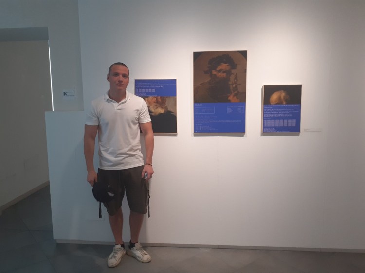 Quanto agli effetti di un atteggiamento di massa spregiudicatamente incurante del pericolo di una simile deriva tecnologica, questi sono magistralmente riassunti da Tomaini nel nucleo di opere Silicio, in cui il quadro si presenta suddiviso in due regioni: una in cui il lavoro originale, sempre desunto da classici del passato – per indicarci ed educarci a quelli che dovrebbero essere i veri modelli da seguire – è scomposto in fasce orizzontali disallineate che simulano la fase di cancellazione dei dati; l’altra porzione in cui compaiono i codici algoritmici per l’annullamento di tale immagine, in un processo simulatore dell’autodistruzione collettiva astratta, difficile dire se consapevole o meno. Pur sapendo la difficoltà di parlare con uno schieramento per nulla propenso ad indietreggiare, non manca nemmeno lo sforzo di riportare il focus sulla necessità di ridare importanza al lavoro artigianale, riproducendo opere, sempre mutuate dall’arte moderna, sugli schermi dei tablet.