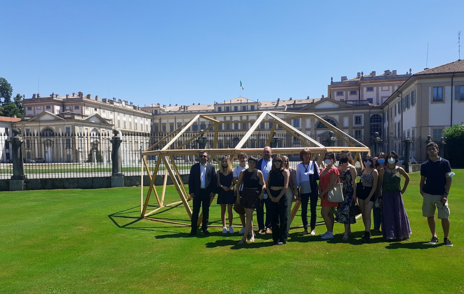 Sotto i riflettori va però inevitabilmente solo una minima parte di un lavoro inimmaginabile, come ha sottolineato durante l’inaugurazione della doppia rassegna di venerdì 25 giugno, Maurizio Caldirola, coordinatore e promotore principale dell’intera operazione, che ha ricordato come tutti gli allievi abbiano avuto la loro parte di attività da “sbrigare”: “dai designer che hanno progettato i modelli delle opere ambientali e delle maquette, agli scenografi che hanno pianificato gli allestimenti, passando dagli architetti che hanno elaborato il mappale con i rendering delle installazioni e dei modellini. Fino agli studenti dell’indirizzo multimediale, a cui è stato affidato l’incarico di salvaguardare l’operato dei propri compagni, attraverso un cortometraggio che verrà divulgato sui social al termine delle mostre, che restituisca l’essenza di un’esperienza che io sappia unica in Italia di questo genere, messa in campo in un periodo complesso come quello che viviamo”. Soddisfatto dell’iniziativa, specialmente delle ricadute positive generate in termini di valorizzazione delle abilità degli studenti coinvolti nell’esperienza di P.t.c.o. (ex alternanza scuola-lavoro) anche l’assessore alla Cultura monzese, Massimiliano Longo, che ha sottolineato l’importanza del progetto in un territorio che è per solida tradizione patria del design e dell’architettura, avendo già avuto modo di apprezzare l’estetica della mostra in modalità notturna dal Magic Bus di Monza Visionaria. Sulla lunghezza d’onda di Longo si è mantenuto Corrado Beretta, istruttore tecnico-direttivo del Consorzio Parco e Villa Reale, che ha evidenziato il ruolo storico di primissimo ordine giocato da Monza e dalla Reggia nell’ambito del design con l’organizzazione della Biennale, prima della nascita della rassegna Triennale e il passaggio di testimone dell’evento di fama riconosciuta nel capoluogo milanese. Ricordando anche la fortuna degli studenti del Nanni Valentini di poter sperimentare la loro materia di specializzazione, in una cornice di pregio assoluto e invidiabile a due passi dalle aule di lezione. Diversi gli interventi che hanno messo in rilievo l’eccezionalità di un’occasione, sviluppata lungo un intero anno scolastico, che ha offerto l’opportunità di allacciare legami relazionali a dispetto delle tante limitazioni imposte dal momento.