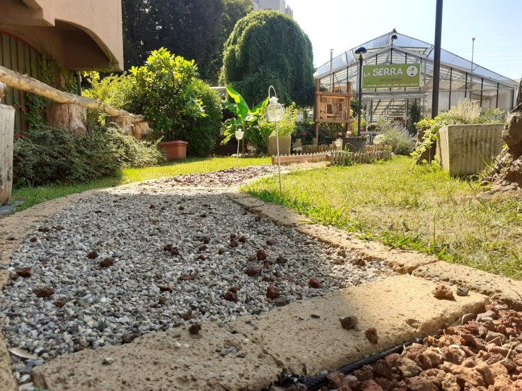 Unica accortezza da prestare per goderne appieno l’essenza per cui è stata pensata, quella di togliersi le scarpe per meglio apprezzare con i piedi le sei consistenze che si alternano nel breve tragitto, all’ingresso della serra, che passano dal lapillo alla paglia, dalla pietra pomice all’erba. Un angolo bucolico curato, la cui idea attuativa è stata ispirata da uno spostamento di terra per il rinnovamento del prato all’interno dello spazio, per mano di uno dei circa 30 volontari che si adoperano, insieme ad un’operatrice, per garantire le attività per il buon funzionamento del sito. Durante l’operazione una scia di terra si è posata al suolo, dando così il guizzo per strutturare la proposta sensoriale, ottimale per la bella stagione.