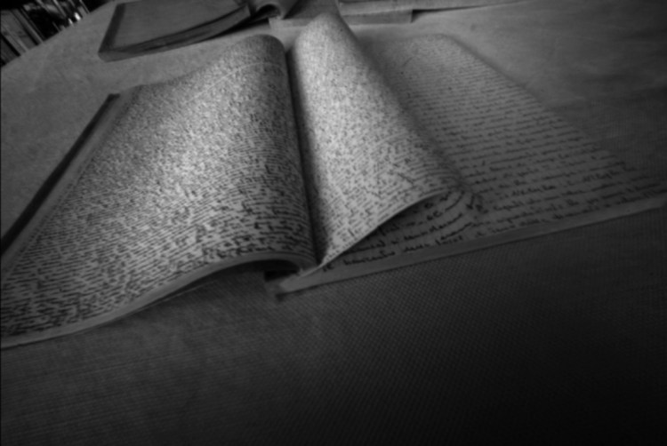 Libri trasfigurati in colombe leggiadre, pagine in movimento, spartiti musicali che incarnano la quintessenza di una maturità anche poetica conseguita da Marina nella glaciale contemporaneità urbana, a dispetto di una maggiore scientificità di fondo imperversante nei primi progetti, specie nell’esito cromatico apparentemente innaturale. Ed è quantomai singolare il fatto che il maestro della “cancellazione della scrittura”, Emilio Isgrò, parli di un possibile “dono degli angeli”, di una “promessa di musica”, di fronte a queste immagini. L’indagine sui libri s’intensifica negli anni seguenti, trovando vie espressive inaspettate e sorprendenti nel flusso infinito di vecchi e diligenti scritti di un amico, copie “in stile amanuense” di testi didattici che testimoniano un’introvabile quanto bizzarra tecnica di studio.