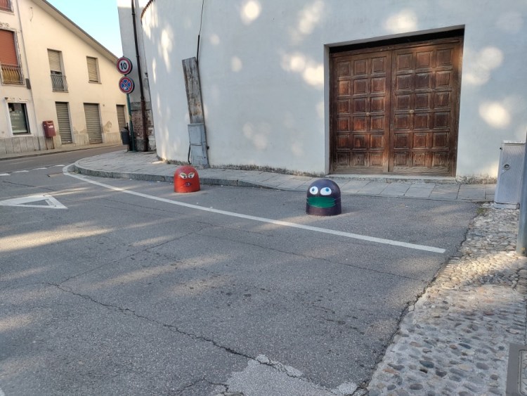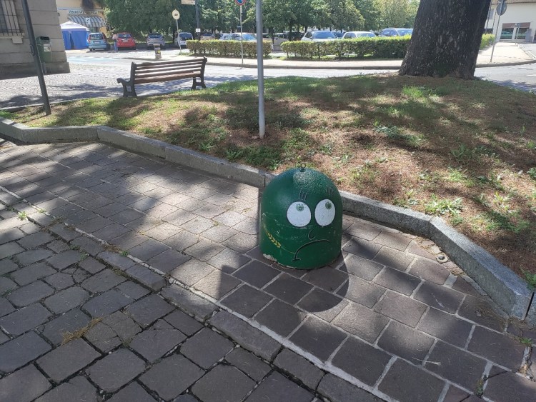 Purtroppo la leggerezza con cui l’artista misterioso ha segnato il territorio – da Cesano a Seveso e ai paesi del circondario, per arrivare con più di una punta di orgoglio a due passi dalla Scala di Milano (provate voi stessi a ritrovarne le tracce) – è sembrata ad un certo punto scontrarsi con le prescrizioni di norme che impongono una precisa colorazione a questi accessori urbani, che oltretutto recano un innegabile valore più funzionale che non estetico. E la questione è arrivata puntualmente in consiglio comunale a Cesano quando ormai già decine, se non centinaia di panettoni avevano preso nuova vita grazie all’irriducibile genio di Sondar. E di fronte ad una smobilitazione di massa dei panettoni avviata a inizio 2021 – ma che come chiunque può constatare di persona, lì si è fermata – come un artista di strada che non si perde d’animo ma crede nella forza delle sue idee dirompenti, ha usato il colore per ribadire la capacità dell’arte di cambiare i connotati di abitati o zone, concentrandosi su un luogo altamente simbolico per la comunità cesanese, e non solo per il rigiro sociale portato dal mercato cittadino, come Piazza Giacinto Facchetti.