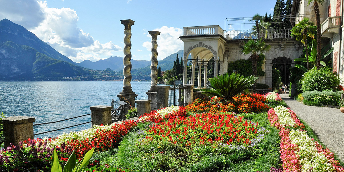 Un elegante esempio di residenza dal gusto eclettico incorniciata da uno sfondo da cartolina, il lago di Como.